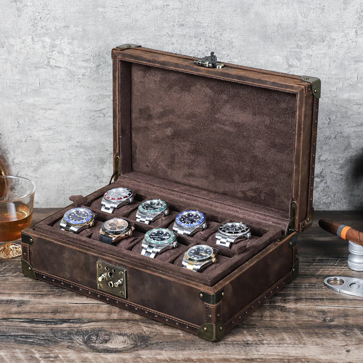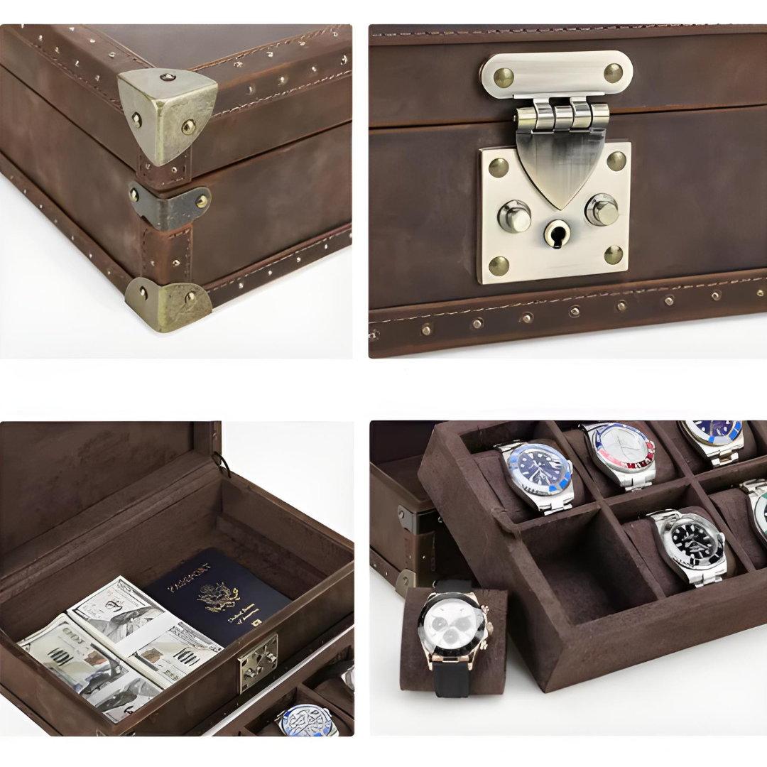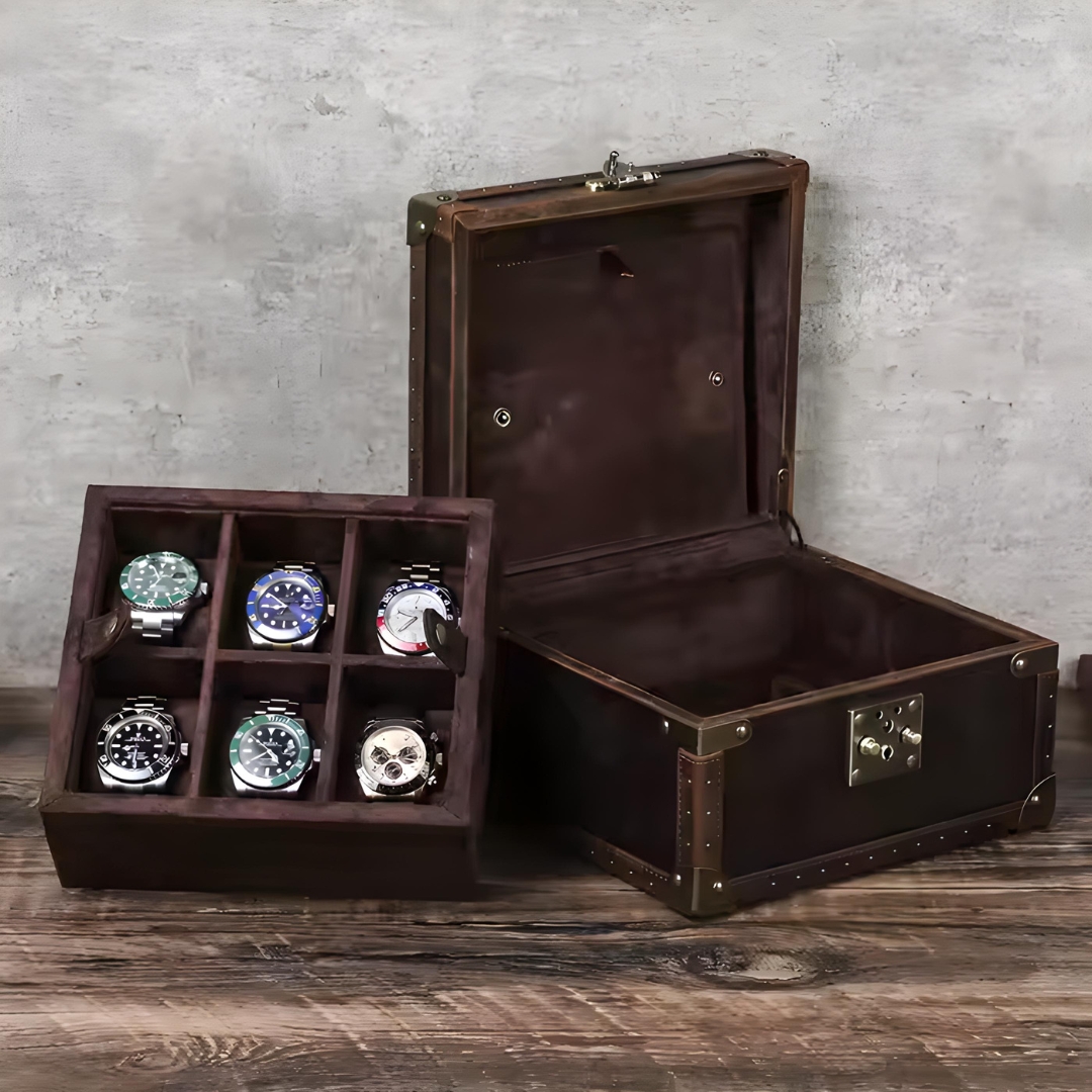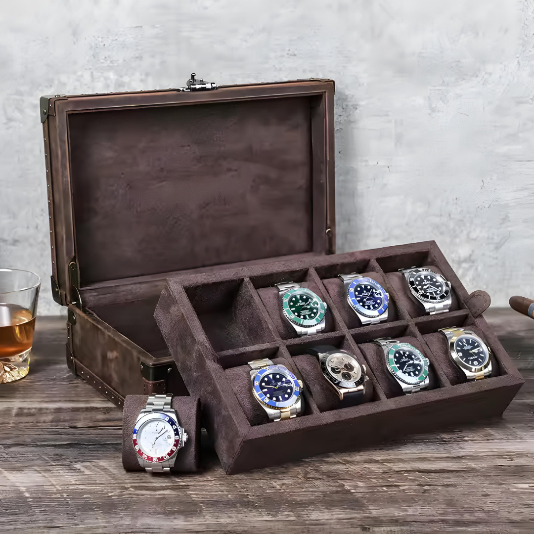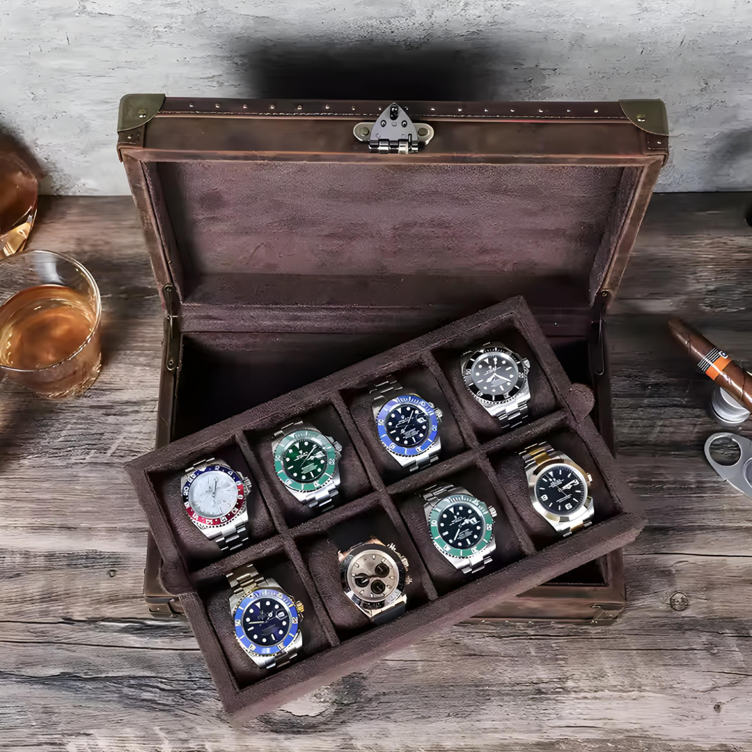 Grâce à ses dimensions idéales, Arche peut accueillir jusqu’à 8 montres avec un agencement parfaitement structuré. Son intérieur en velours doux garantit une sécurité optimale en prévenant les rayures et les chocs, pour préserver la beauté de chaque pièce.