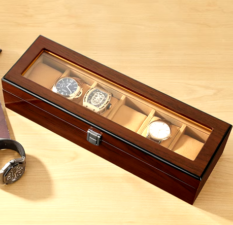 Doté d’un couvercle en verre transparent, Caelus permet d’admirer sa collection sans avoir à l’ouvrir, apportant à la fois esthétisme et praticité. Son intérieur en flanelle douce protège chaque montre des rayures et des chocs, assurant une conservation optimale des pièces les plus précieuses.
