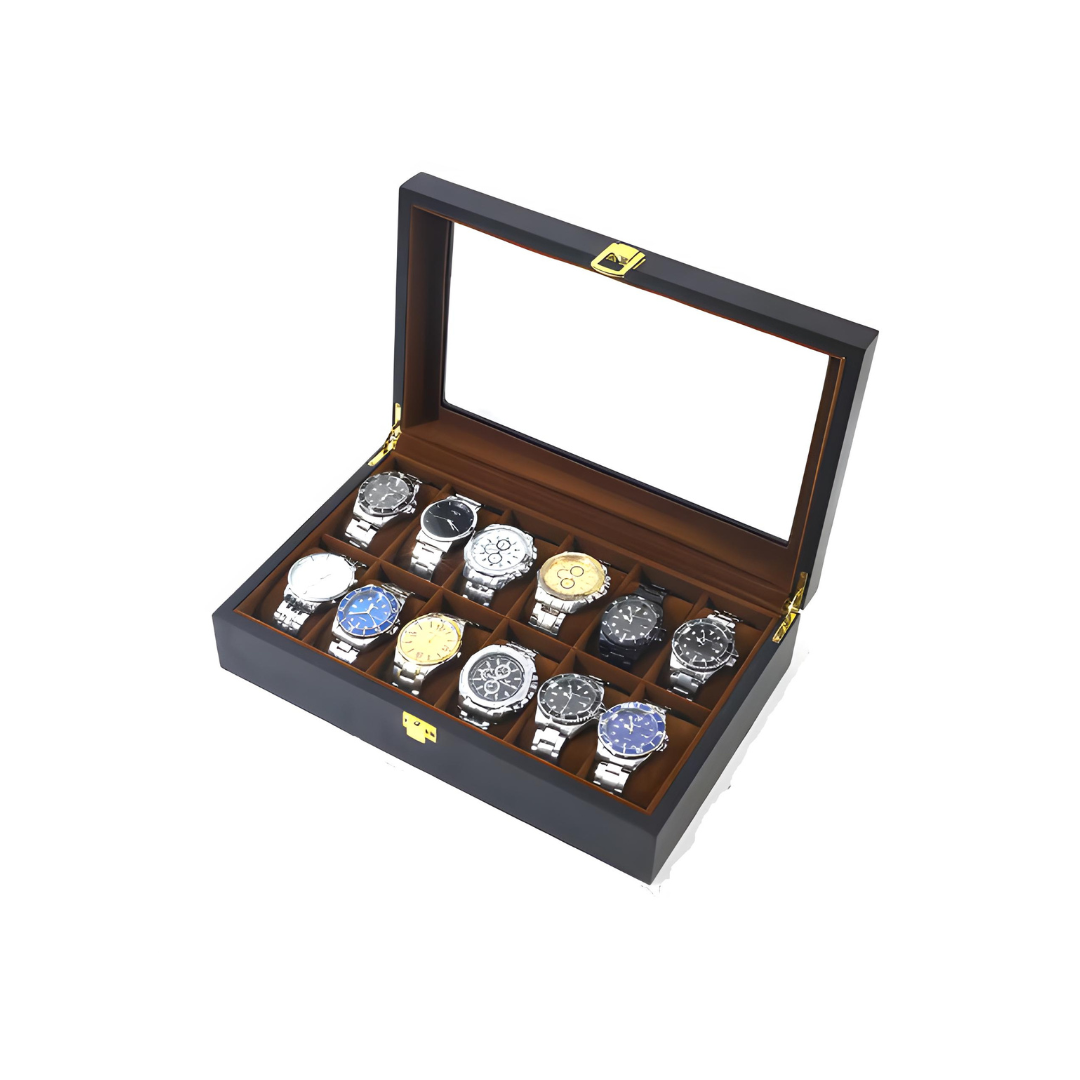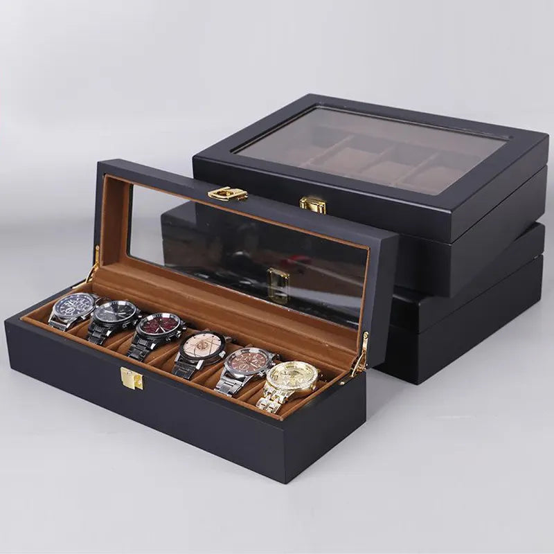 Le couvercle en verre transparent permet une visualisation instantanée des montres sans avoir à ouvrir le coffret. Cette fonctionnalité apporte une dimension pratique et esthétique, idéale pour choisir facilement une montre tout en mettant en valeur la collection.