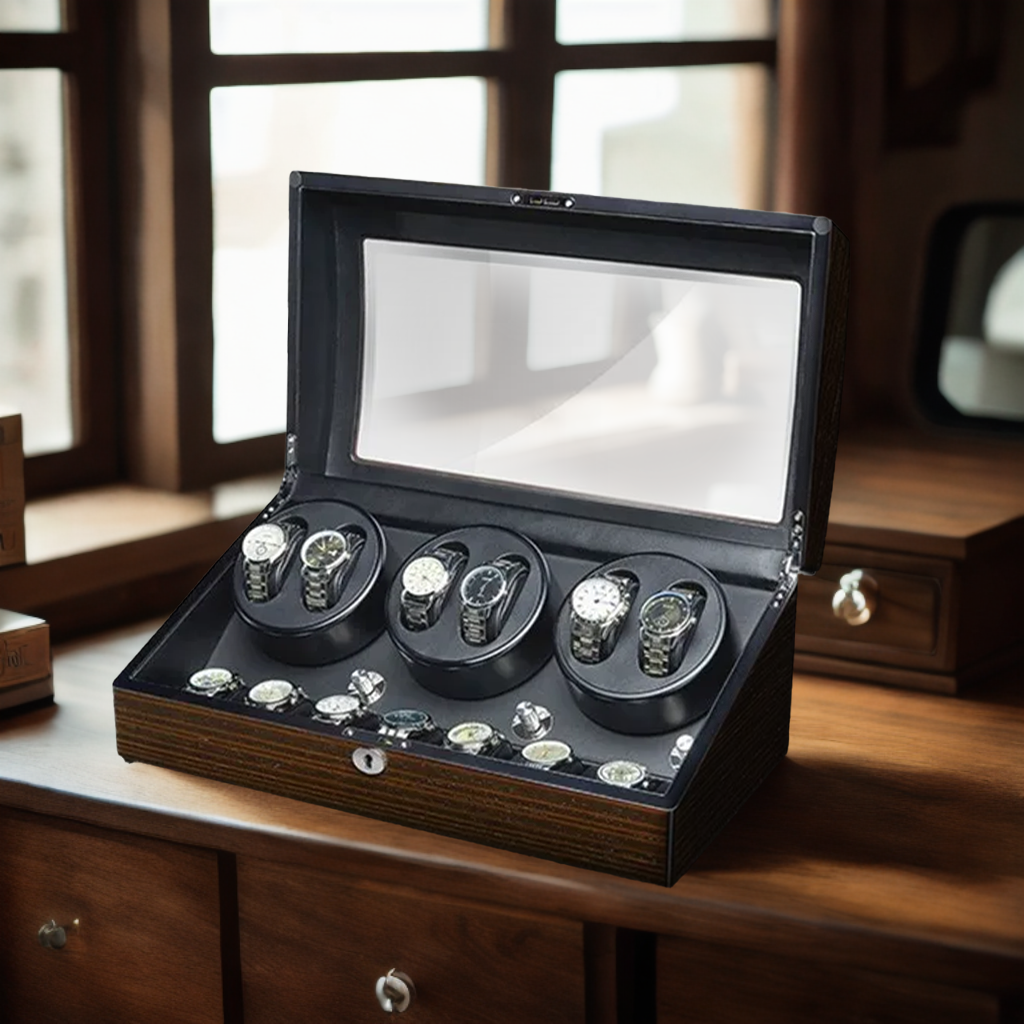 Avec son design alliant élégance intemporelle et innovation moderne, le remontoir à montres est l'accessoire parfait pour tout passionné d'horlogerie. Que vous souhaitiez exposer fièrement votre collection ou simplement prendre soin de vos montres les plus précieuses, l'écrin sophistiqué saura répondre à toutes vos attentes. Offrez à vos montres le soin qu'elles méritent tout en ajoutant une pièce de luxe à votre décor.