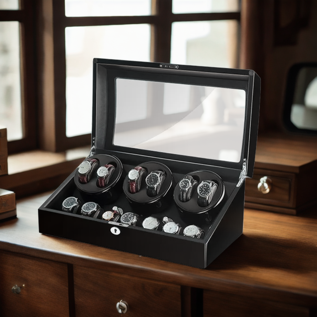 Avec son design alliant élégance intemporelle et innovation moderne, le remontoir à montres est l'accessoire parfait pour tout passionné d'horlogerie. Que vous souhaitiez exposer fièrement votre collection ou simplement prendre soin de vos montres les plus précieuses, l'écrin sophistiqué saura répondre à toutes vos attentes. Offrez à vos montres le soin qu'elles méritent tout en ajoutant une pièce de luxe à votre décor.